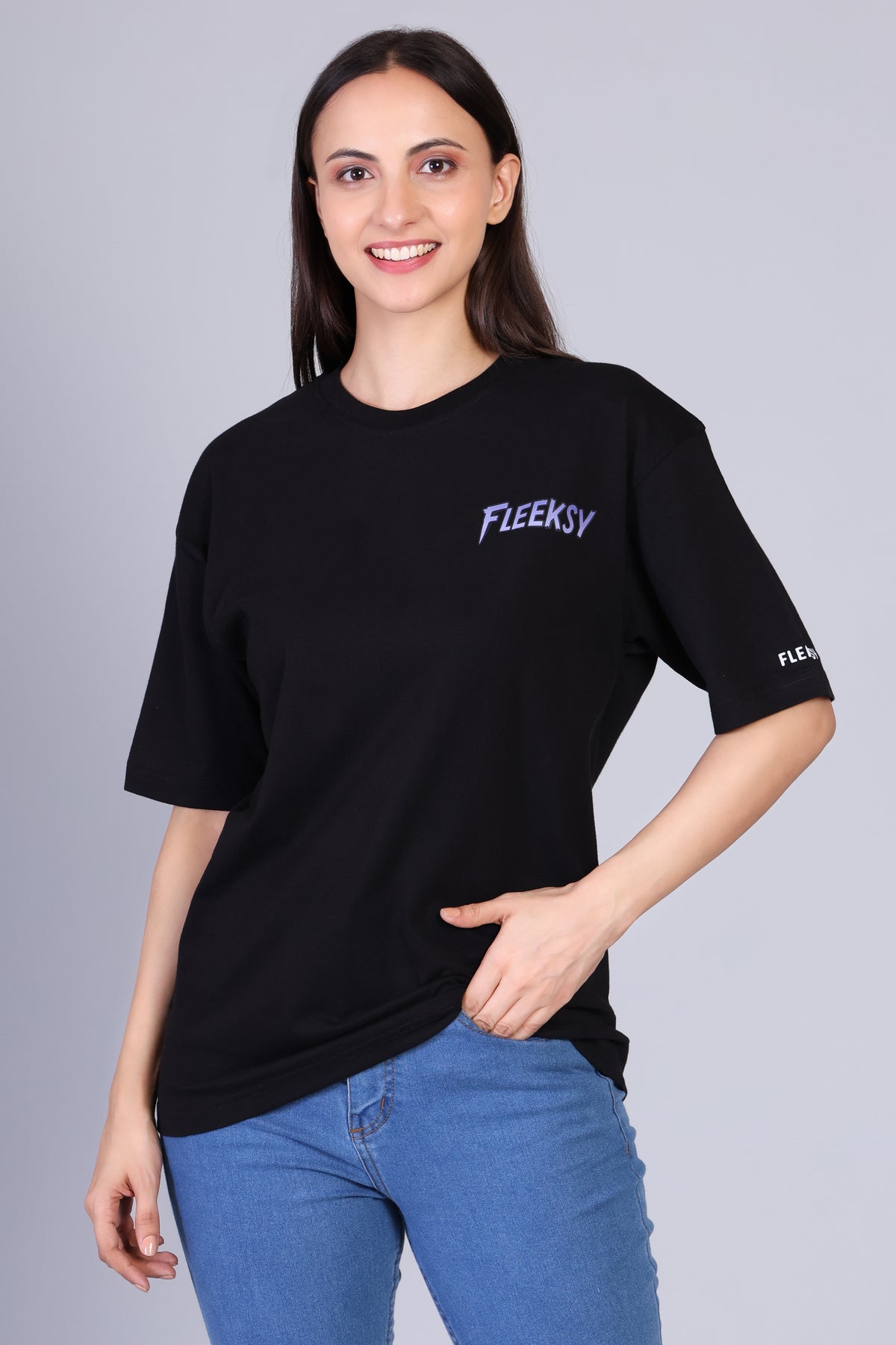 πŸ¦‹ Elevate your street style with the Fleeksy night black oversized tee featuring an exclusive purple butterfly artwork!